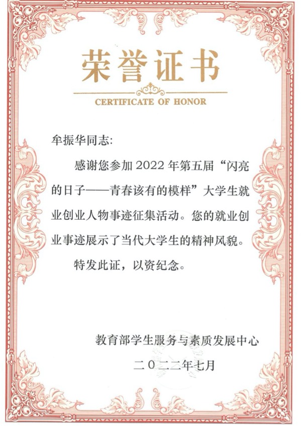 本站讯 近日,教育部学生服务与素质发展中心公布了第五届“闪亮的日子——青春该有的模样”大学生就业创业人物事迹征集活动名单,我校2014级工程造价专业学生牟振华成功入选。
